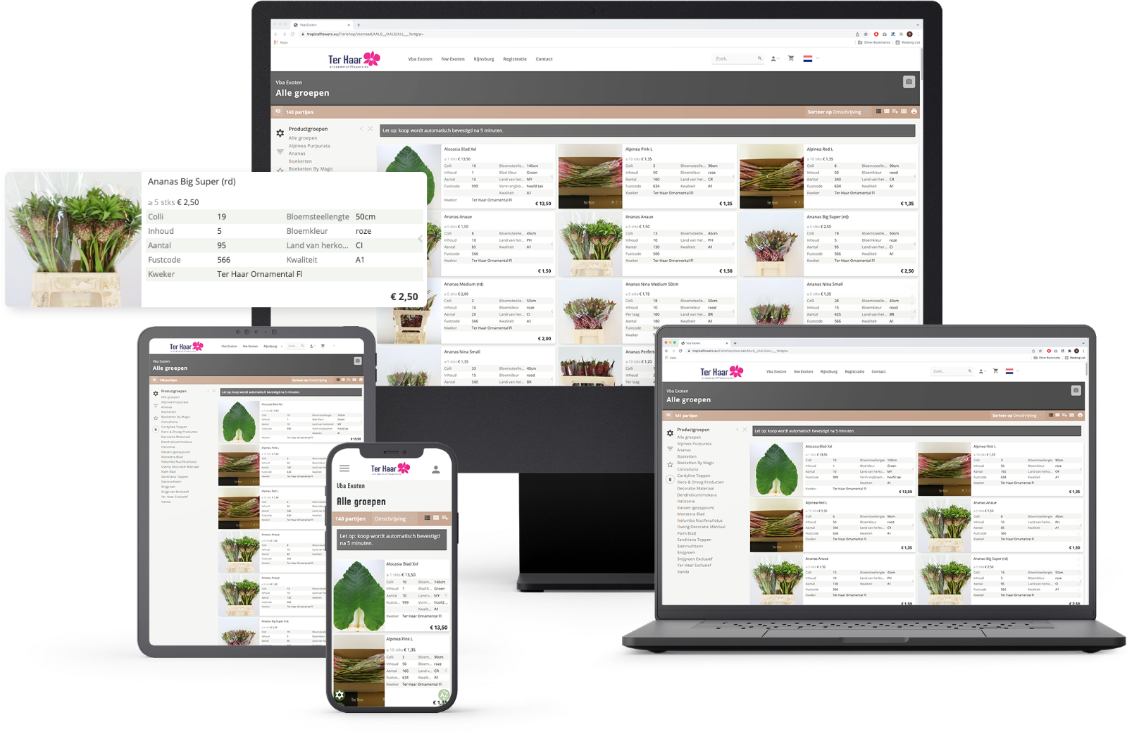 Als Kunde von Ter Haar steht Ihnen ein breites Sortiment an einzigartigen und exklusiven Produkten zur Verfügung. Wir importieren die Produkte von der Quelle: den Züchtern. Gemeinsam haben wir das gleiche Ziel: einzigartige Produkte zu einem fairen Preis zu liefern.